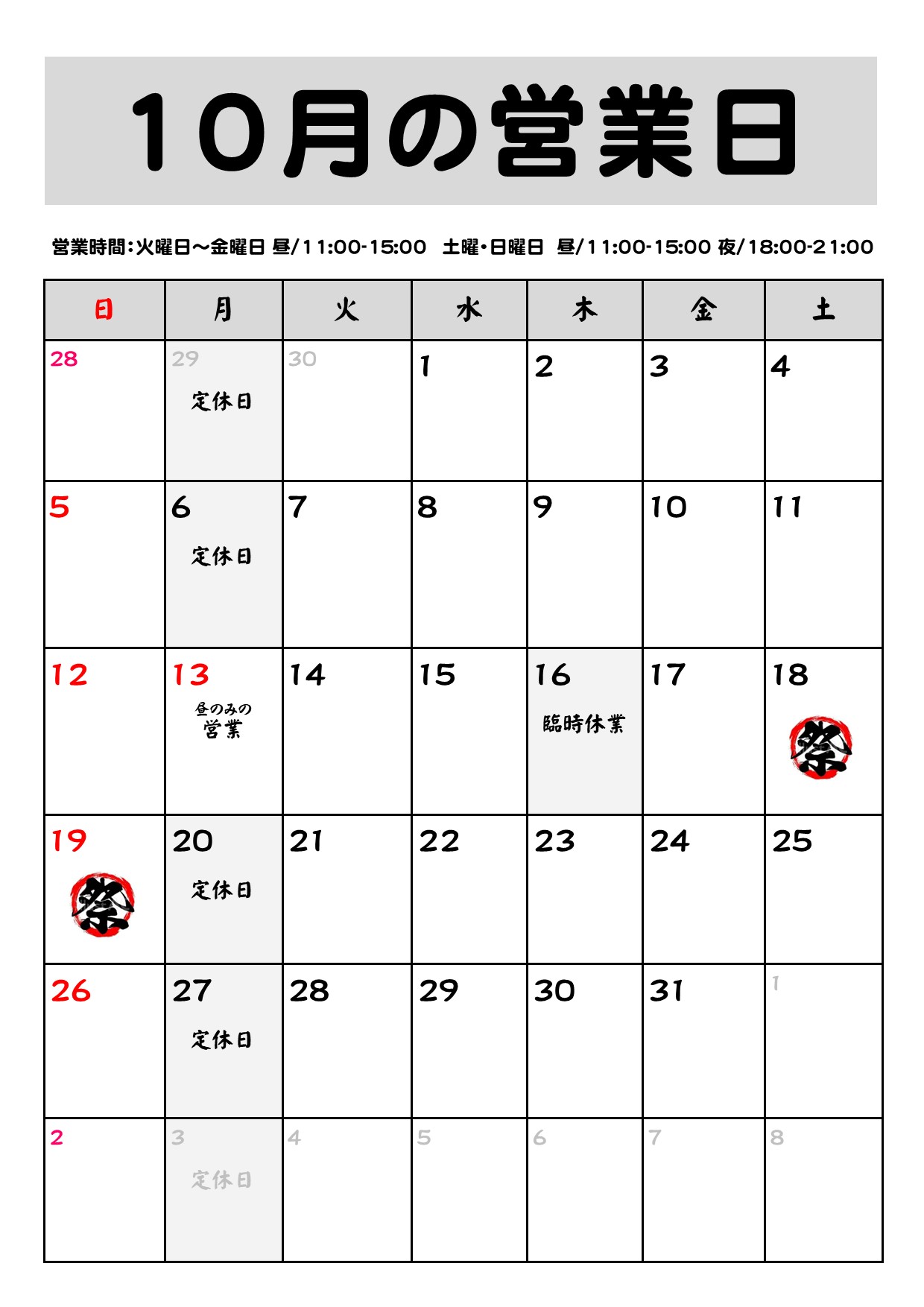 3. 10月の営業日